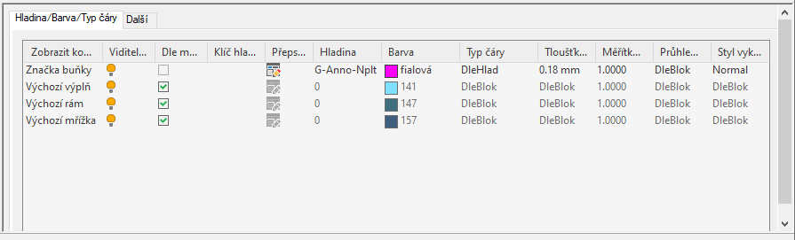 - Klikněte na kartu Hladina/Barva/Typ čáry.
