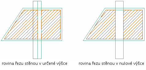 Aby se do hranice asociativního prostoru zahrnuly v rámci generování prostoru také tažení stěn a modifikátory stěn, výška roviny řezu stěny s tažením nebo modifikátorem musí být nastavena na hodnotu 0.