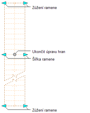 Uzly přímého schodiště Zúžení ramene, Šířka ramene a Ukončit úpravu hran.