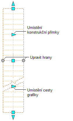 Uzly přímého schodiště Umístění konstrukční přímky, Umístění cesty grafiky a Upravit hrany