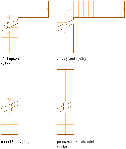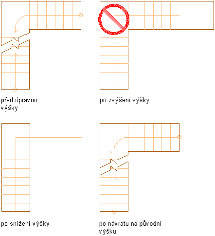 Změna výšky průběhu schodiště s vypnutou možností StairFit.
