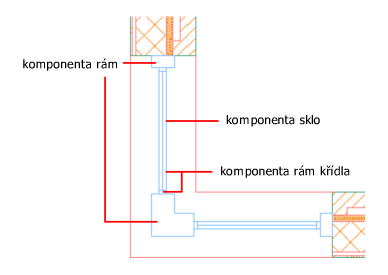 V rohovém okně je rám okna rozdělen na tyto komponenty: