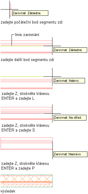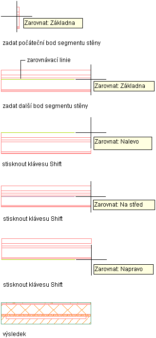 | zadat body, které definují pravou stranu stěny | vyberte možnost Doprava pro zarovnání. |