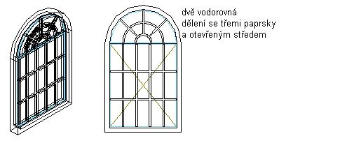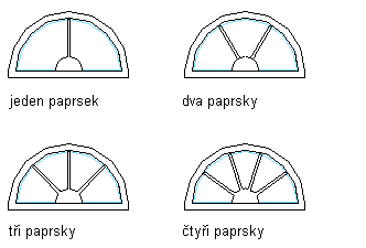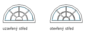 Sluneční vzor je možné přidat pouze do horního parapetu okna. Sluneční vzor lze použít pro tvary oken s kulatou, půlkulatou nebo čtvrtobloukovou horní částí.