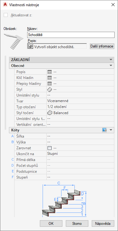 Vlastnosti nástroje schodiště
