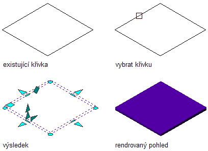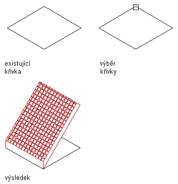 Převod křivky na střešní desku za použití přímého režimu