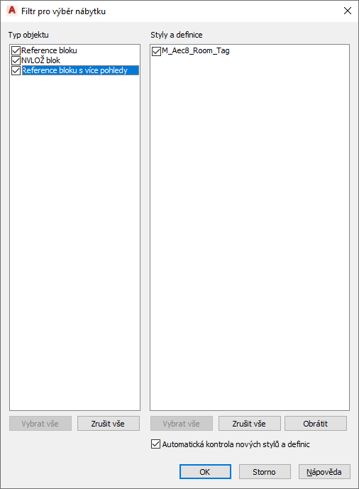 Ve výkresu jsou odkazovány pouze styly a definice, které jsou uvedeny v seznamu.