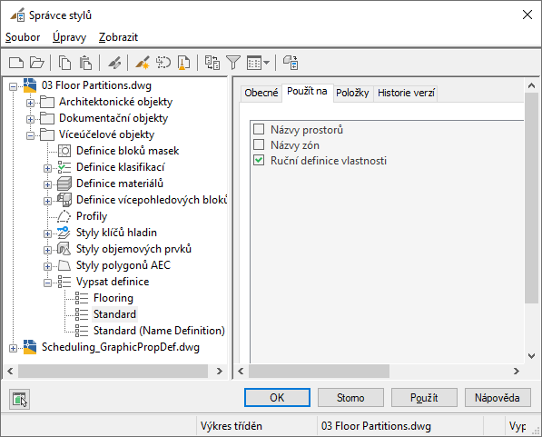 Správce stylů se zobrazí s aktuálním výkresem, rozbalený do stromového zobrazení.