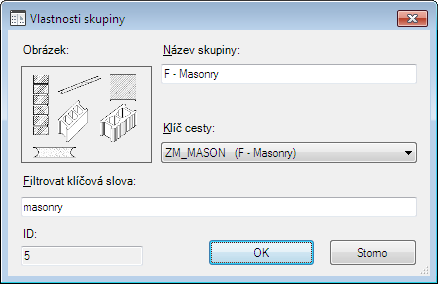 | Klíč cesty | Položka z tabulky databáze DirKeys. Tato hodnota je zástupný název zástupce, který označuje umístění výkresu a souborů obrázků, které jsou externí pro databázi pro tuto skupinu. |