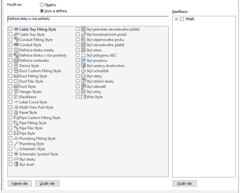 Ruční vlastnosti, které budou stejné pro všechny kopie stylu, náležejí do definice sady vlastností založené na stylu, která je použita na styl (například styl stěny) nebo definici (například definici vícepohledového bloku).