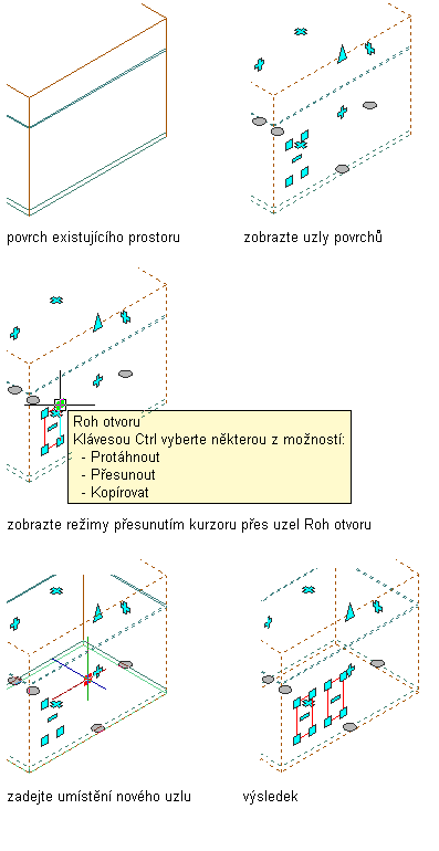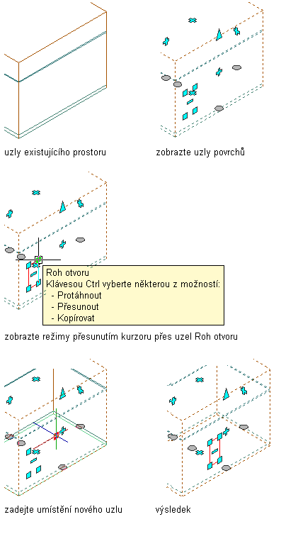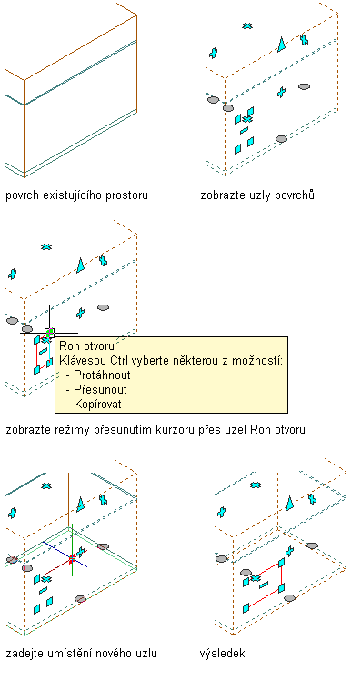 | zkopírovat otvor plochy | dvakrát stiskněte klávesu Ctrl a zkopírujte otvor do požadovaného umístění. |