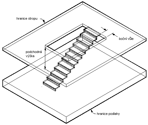 Určení podchodné výšky a boční vůle pro objekt schodiště a prostoru