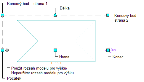 Tento postup použijte ke změně počátečního bodu, koncového bodu, okraje nebo vrcholu čáry řezu. Můžete táhnout uzel do požadovaného místa nebo můžete zadat specifickou hodnotu pro rozměr.