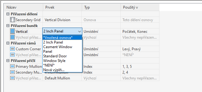 - Rozbalte položku Architektonické objekty a poté rozbalte nabídku Styly jednotek obvodových plášťů.