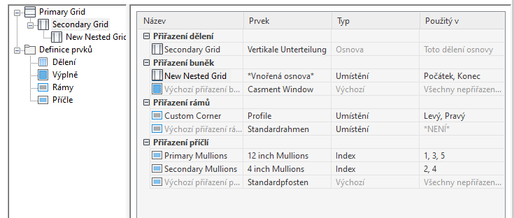 - Ve sloupci Prvek vyberte položku Vnořená osnova.