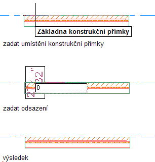 Kreslení konstrukční čáry s nulovým odsazením na základě segmentu přímé stěny