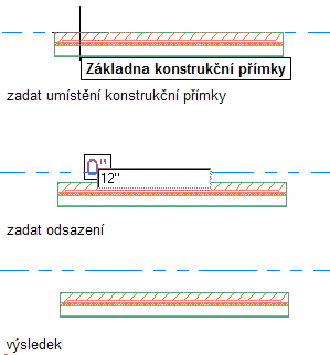 Kreslení konstrukční čáry se zadaným odsazením na základě segmentu přímé stěny