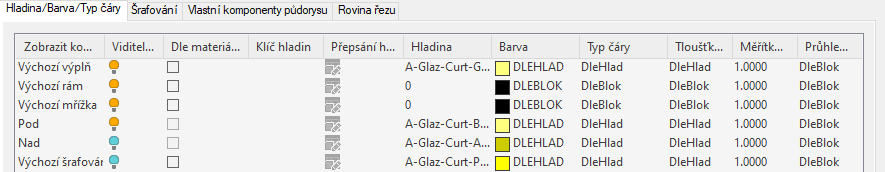 | ve výšce, která je vyšší než hodnota pro Výšku roviny řezu | se objekty zobrazí za použití vlastností, určených pro komponentu Nad rovinou řezu v kartě Hladina/Barva/Typ čáry. |