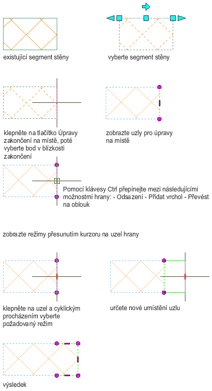 Tento postup slouží k odsazení hrany komponenty stěny pomocí uzlů Hrana.