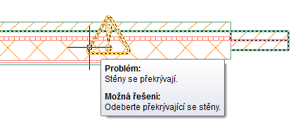 Zamýšlená interakce mezi objekty ve výkresu aplikace Sada nástrojů AutoCAD Architecture 2027 závisí na různých pravidlech vzájemného umísťování objektů. Vždy, když software zaznamená problém s umístěním objektů nebo jejich komponent, zobrazí se ikona řešení, která lokalizuje problém, jak ukazuje obrázek.