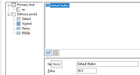Po vytvoření definice příčle ji můžete přiřadit k jakékoliv příčli v sestavě dveře/okno.