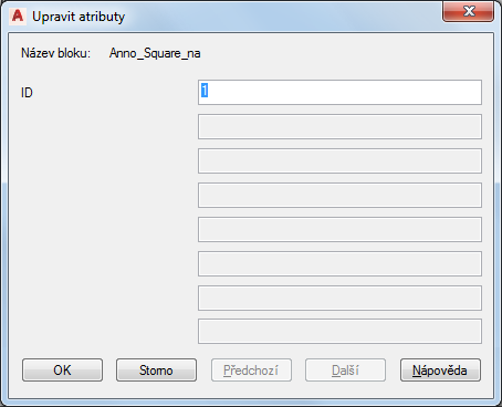 Pomocí tohoto postupu můžete v dialogu Upravit atributy upravit blokovou poznámku nebo změnit její typografické a další vlastnosti.