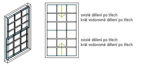 Po přidání bloků mřížek do stylu okna můžete pro mřížky přiřadit materiál, například dřevo, a zadat vlastnosti zobrazení, například barvu a typ čáry.