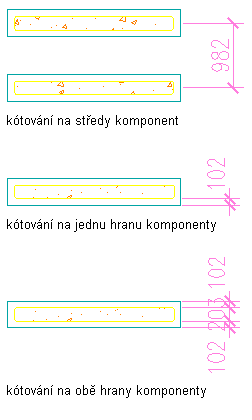 | Tloušťka stěny:Střed | Kótuje středovou čáru stěny s jednou komponentou nebo více komponentami |