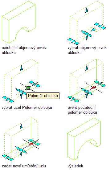 Tímto postupem změníte poloměr oblouku u objemového prvku oblouku pomocí uzlů.