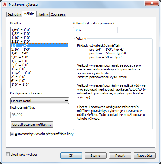 Upozornění: Zkontrolujte, zda jste nastavili parametry nastavení výkresu na automatické načtení stylu klíče hladiny do nového výkresu. To je velmi důležité pro přiřazení obsahu ke klíči hladiny.