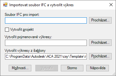 Při importu souboru IFC jsou vytvořeny výkresové soubory, které odpovídají jednotlivým částem struktury projektu IFC. Soubory jsou společně odkazovány do hlavního hostitelského souboru, který představuje celý soubor IFC. Proces importu také vytvoří soubor protokolu (LOG), který bude obsahovat informace o objektu a geografické poloze. Tento soubor je uložen ve stejném umístění jako importovaný soubor IFC. Soubory IFC lze importovat do projektu aplikace Sada nástrojů AutoCAD Architecture 2027 nebo jako samostatné výkresy.