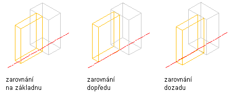 Tento postup použijte pro zarovnání výplně na střed základny jednotky obvodového pláště, před základnou nebo za základnou. V Půdorysu je přední část jednotky obvodového pláště (kreslené zleva doprava) pod základnou a zadní část je nad základnou.