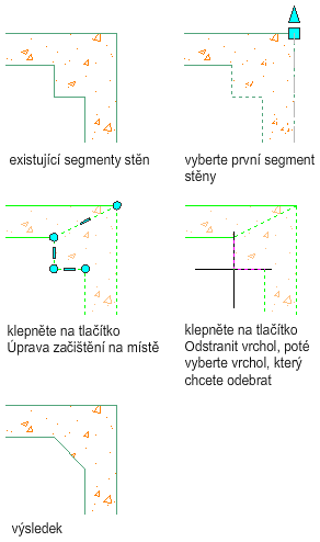 Tento postup slouží ke změně průsečíku stěny pomocí odebrání vrcholu z komponenty.