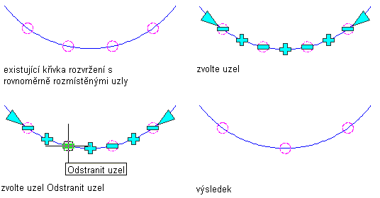 Tento postup slouží k odebrání uzlů z křivek rozvržení.