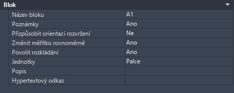 - Na paletě vlastností vyberte v části Blok hodnotu Ano pro možnost Poznámka.