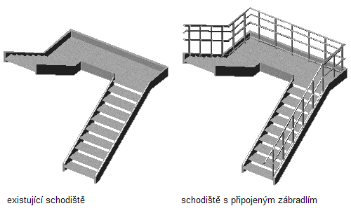 Tento postup slouží k vytvoření zábradlí, které je připojeno ke schodišti a které obsahuje vámi zadané nastavení.