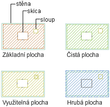 Volně stojící sloupy se vypočtou jako vnitřní stěna. Využitelná hranice bude odsazena 0,15 m do sloupu.