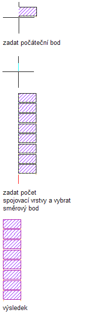 Tento postup slouží k vkládání komponent detailů, které je nutné narýsovat vícekrát v lineárním poli, jako například v případě cihel. V tomto příkladu má nástroj pro vkládání cihel vlastnost Pohled nastavenu na Řez. Stejné výzvy se zobrazí v případě, že bude položka Pohled nastavena na Půdorys. Pokud je nastavena možnost Prostorový, použijí se výzvy popsané v části Vložení komponent razítka. Pokud je nastavena možnost Prostorový (vzor), použijí se výzvy popsané v části Vložení komponent sypaniny.