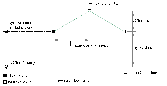 Tento postup slouží k přidání šítu k linii střechy dané stěny. Štít je možné přidat také v tabulce Linie střechy/podlahy na paletě Vlastnosti.