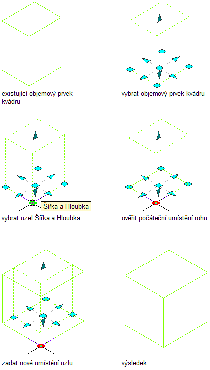 Při přesunování rohu objemového prvku se nemění umístění jeho protilehlého rohu.