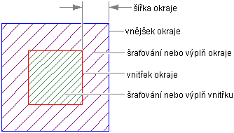 | Výplň hrany | Komponenta výplně vnější části polygonu AEC. Tato komponenta je zobrazována pouze v rendrovaných pohledech. Ujistěte se, že ve všech rendrovaných pohledech používáte buď komponenty modelového zobrazení Vnitřní výplň a Výplň hrany nebo komponenty zobrazení v barvách True Color Vnitřní výplň a Výplň hrany. Použijete-li oba způsoby zobrazení současně, budou výplně nakresleny jedna přes druhou. Poznámka: Jsou-li rozměry hrany nastaveny na 0, není výplň hrany v rendrovaném polygonu AEC zobrazena.