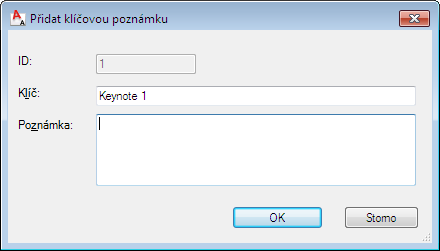 . Dialog Vlastnosti klíčové poznámky se zobrazí s polem ID, v němž je uveden nepřepisovatelný databázový identifikátor klíčové poznámky, kterou upravujete.