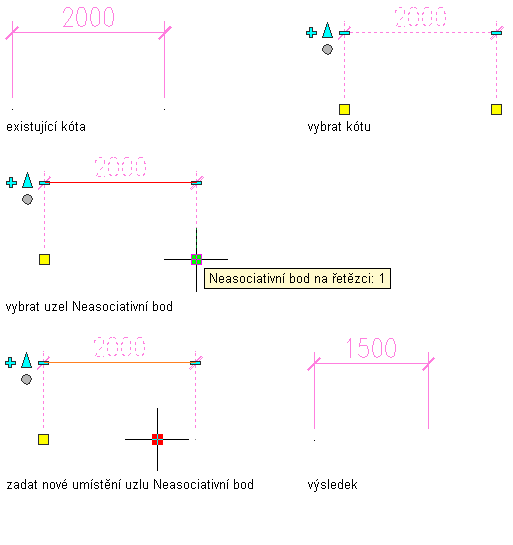 Pro každý přidaný bod je na konec vynášecí čáry přidán uzel umístění a kóty v řetězci jsou aktualizovány.