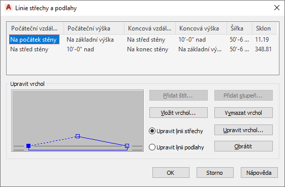 - Chcete-li obrátit linii střechy nebo linii podlahy, klikněte na Obrátit.