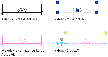 | Výběr pouze jedné kóty aplikace AutoCAD |