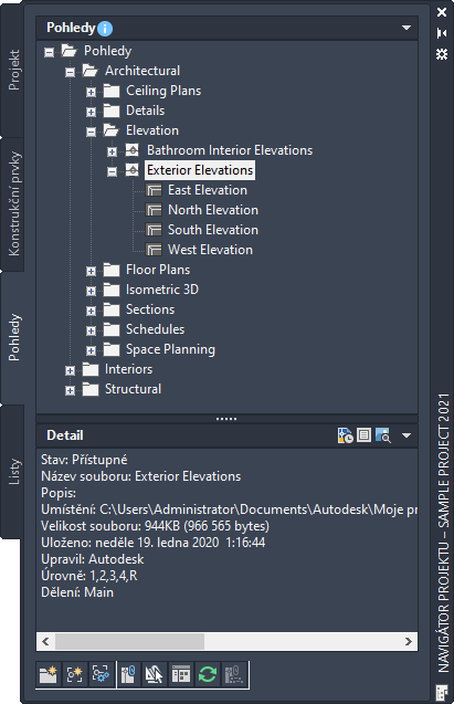 Pohledy modelového prostoru vnějšího pohledu v Navigátoru projektů