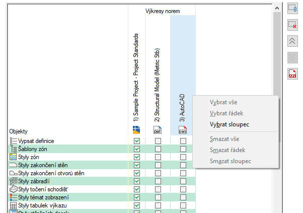 Pokud ještě nemáte výkresy norem, vytvořte nový výkres obsahující nastavení projektových norem.