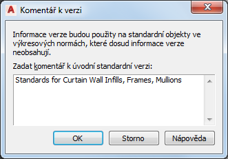 Pokud jste přidali výkres norem do projektu a výkres je umístěn ve složce projektu, tento výkres bude mít automaticky počáteční informaci o verzi, přidanou do všech stylů a nastavení zobrazení. Pokud je nový výkres norem umístěn mimo složku projektu a nebyl zatím verzován, musíte mu přiřadit verzi.