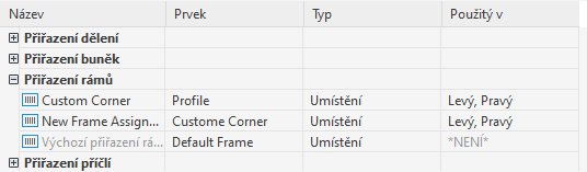 V seznamu přiřazení rámů se zobrazí nové přiřazení rámu.