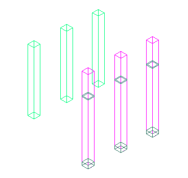 Objekty sloupců (levé), převedené na prostory (pravé)